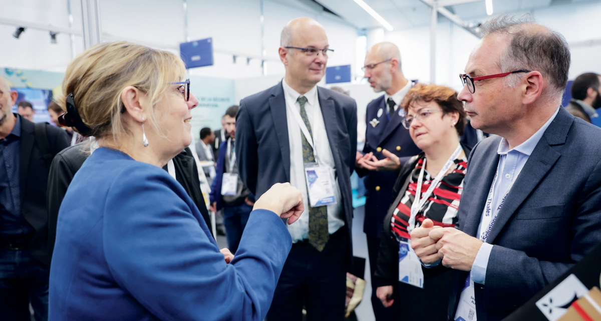 Minister for Higher Education and Research, Sylvie Retailleau, at European Cyber Week in Rennes, November 2023. She met teams from the Cyberschool research school, the CyberSkills4All programme and the IA-Cluster project.